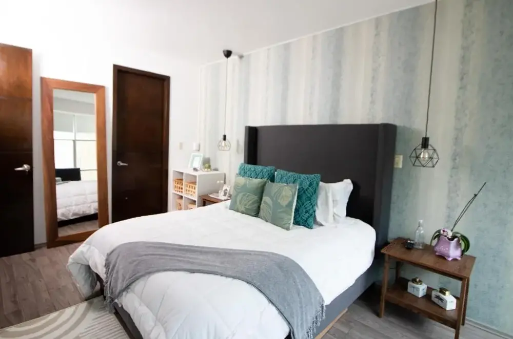 El apartamento es increíble.Bien decorados y tener todas las faciidades que pueda necesitar en unos días en la Ciudad de México.El dormitorio es cómodo y tiene suficiente espacio.
